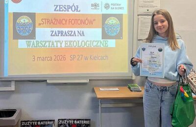 Podczas tegorocznych warsztatów ekologicznych zorganizowanych przez Szkołę Podstawową nr 27 w Kielcach szczególnie wyróżniła się Maja Papros z kl. 7f, zdobywając I miejsce w międzyszkolnym ...