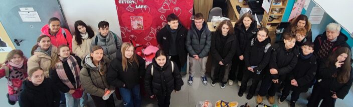 Późną jesienią ubiegłego roku w naszej szkole została przeprowadzona akcja charytatywna polegająca na zbiórce karmy oraz niezbędnych akcesoriów dla bezdomnych zwierząt. Celem przedsięwzięcia było wsparcie Schroniska dla Bezdomnych Zwierząt w Kielcach.Dzięki ogromnemu zaangażowaniu uczniów, rodziców oraz nauczycieli udało się zgromadzić znaczną ilość karmy suchej i mokrej, koców, zabawek, smyczy oraz innych potrzebnych artykułów.