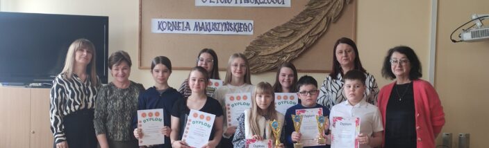 W czytelni 12 lutego 2026 r. odbyło się uroczyste podsumowanie corocznego „Urodzinowego Konkursu Wiedzy o Życiu i Twórczości Kornela Makuszyńskiego”. Ogłoszony przez panie: Marzannę Maciejską i Jolantę Lipiec pisemny konkurs o patronie szkoły dla klas trzecich odbył się 8 stycznia b.r. Natomiast uczniowie klas IV-VIII zaprezentowali swoją wiedzę o Kornelu Makuszyńskim 15 stycznia b.r. podczas pisemnych zmagań zorganizowanych