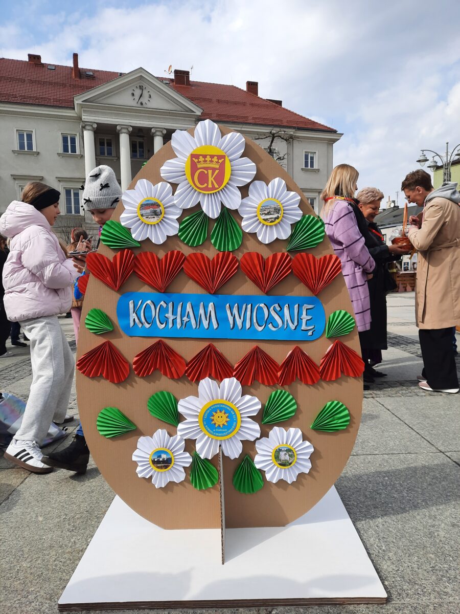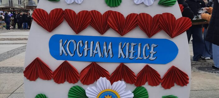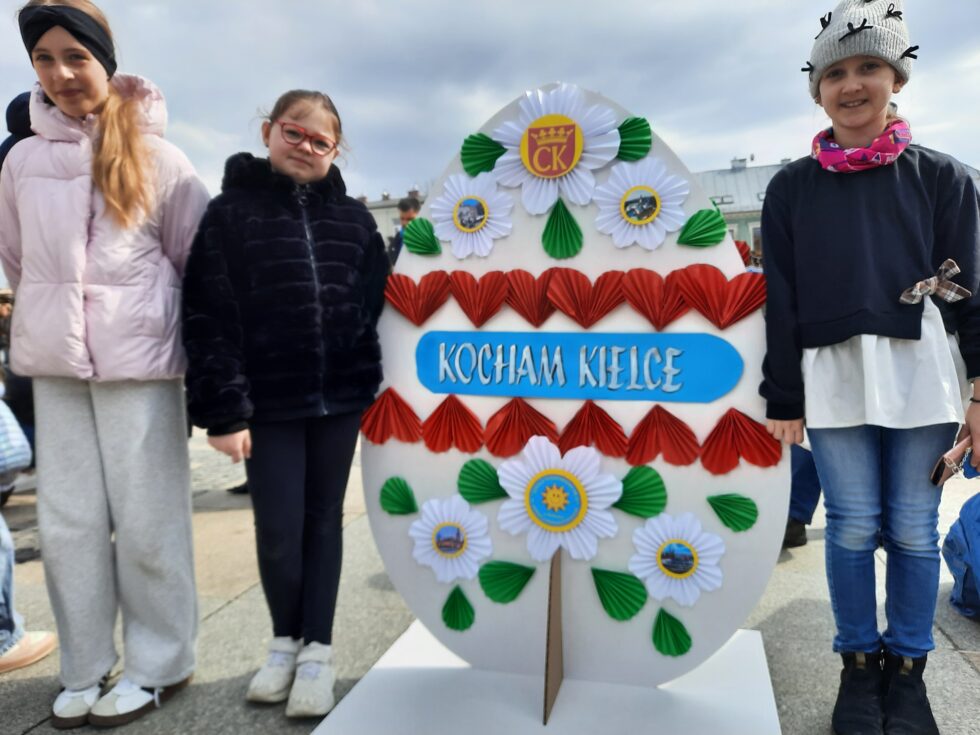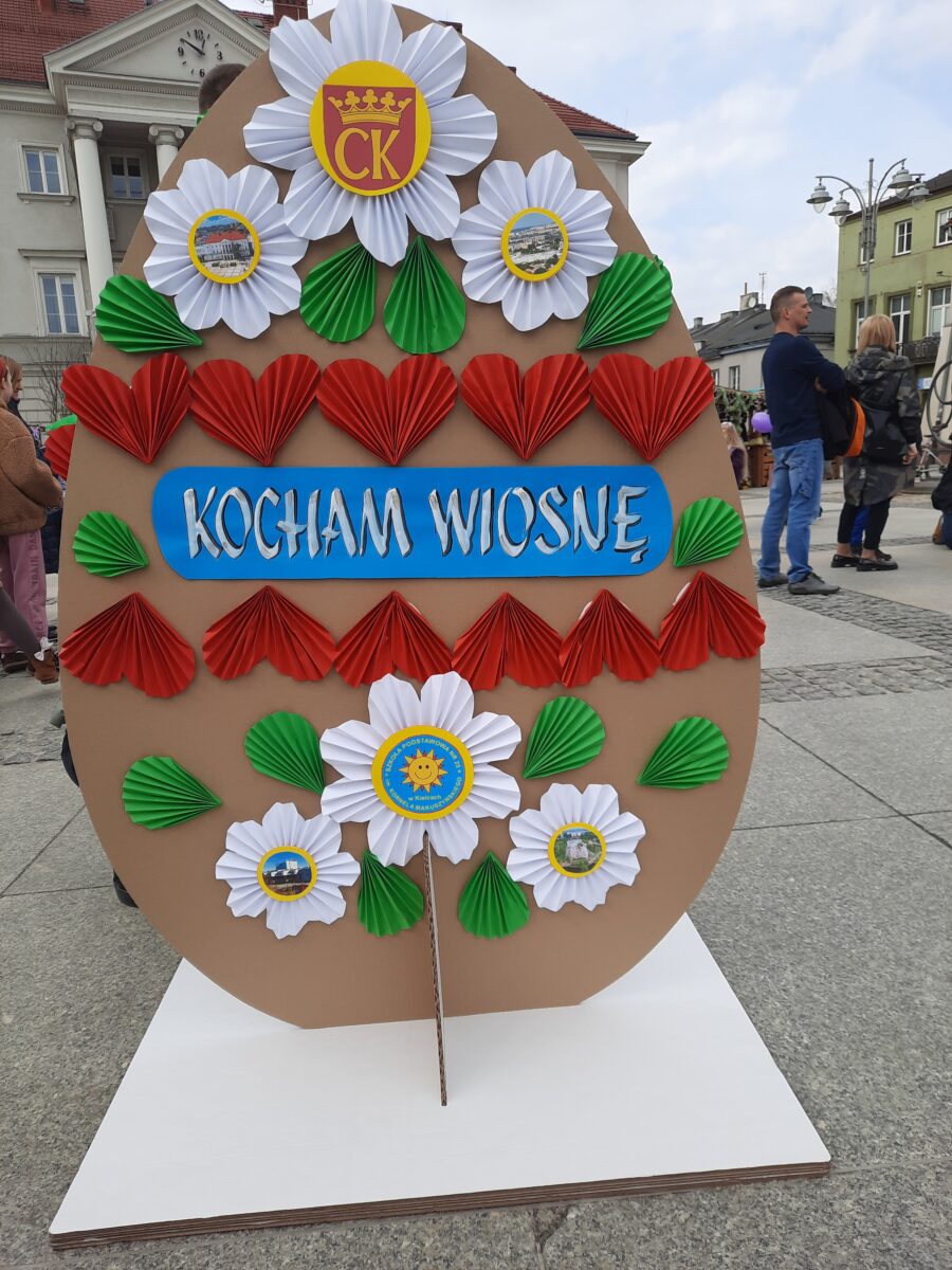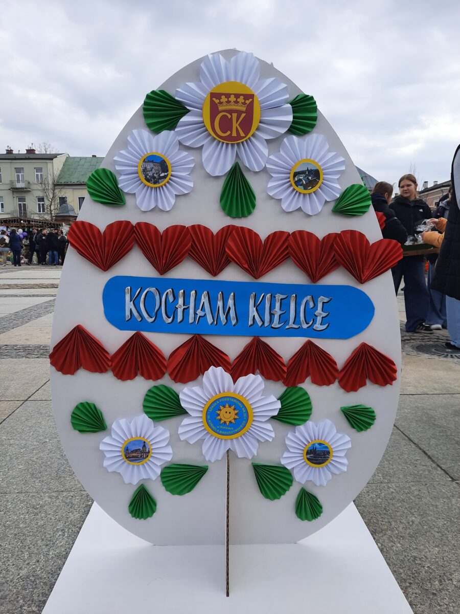 28 marca 2026 r. w ramach Miejskiego Jarmarku Wielkanocnego ,,Kolory Wiosny” na kieleckim Rynku dekorowaliśmy naszą szkolną pisankę wielkanocną. Pokaźnych rozmiarów jajo o wysokości 150 cm wypełniły piękne ozdoby przygotowane przez naszych uczniów, pod opieką nauczycieli techniki i plastyki. W przygotowaniu elementów dekoracyjnych korzystaliśmy z zasobów szkolnego Laboratorium Przyszłości. Motywem przewodnim kompozycji, były miejsca naszego miasta godne odwiedzenia. Uczniowska praca wielkanocna była wyrazem naszego lokalnego patriotyzmu. Praca wzbudzała podziw i zainteresowanie władz miasta, komisji konkursowej i mieszkańców Kielc.