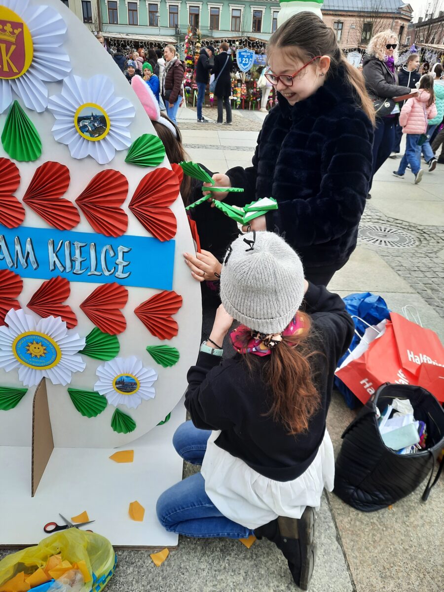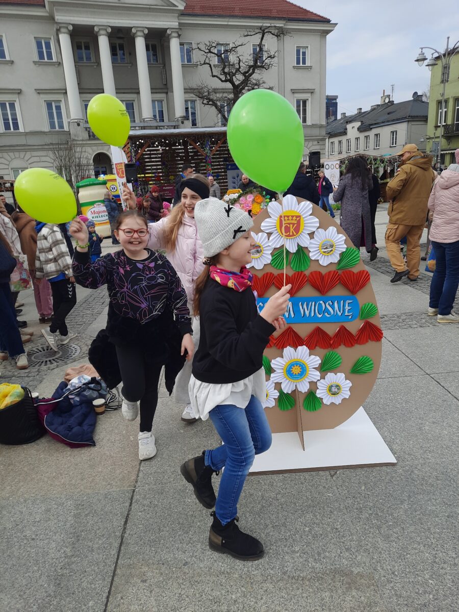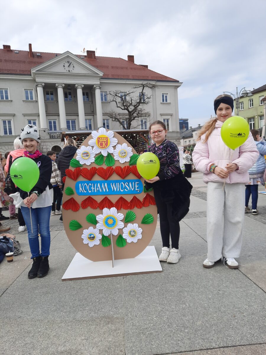 28 marca 2026 r. w ramach Miejskiego Jarmarku Wielkanocnego ,,Kolory Wiosny” na kieleckim Rynku dekorowaliśmy naszą szkolną pisankę wielkanocną. Pokaźnych rozmiarów jajo o wysokości 150 cm wypełniły piękne ozdoby przygotowane przez naszych uczniów, pod opieką nauczycieli techniki i plastyki. W przygotowaniu elementów dekoracyjnych korzystaliśmy z zasobów szkolnego Laboratorium Przyszłości. Motywem przewodnim kompozycji, były miejsca naszego miasta godne odwiedzenia. Uczniowska praca wielkanocna była wyrazem naszego lokalnego patriotyzmu. Praca wzbudzała podziw i zainteresowanie władz miasta, komisji konkursowej i mieszkańców Kielc.