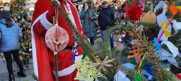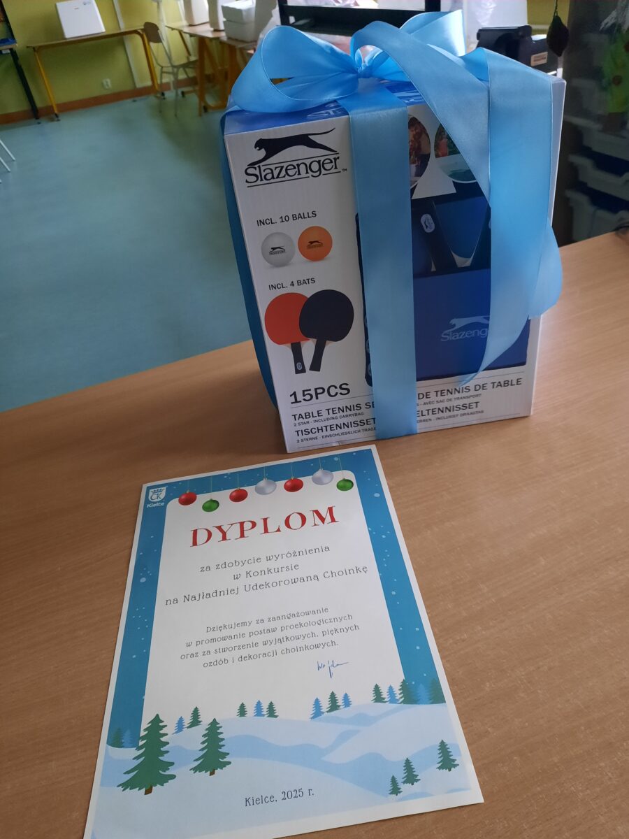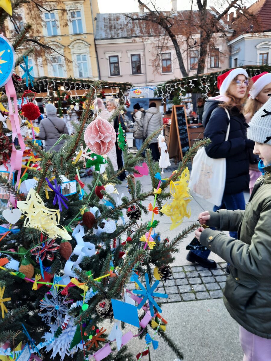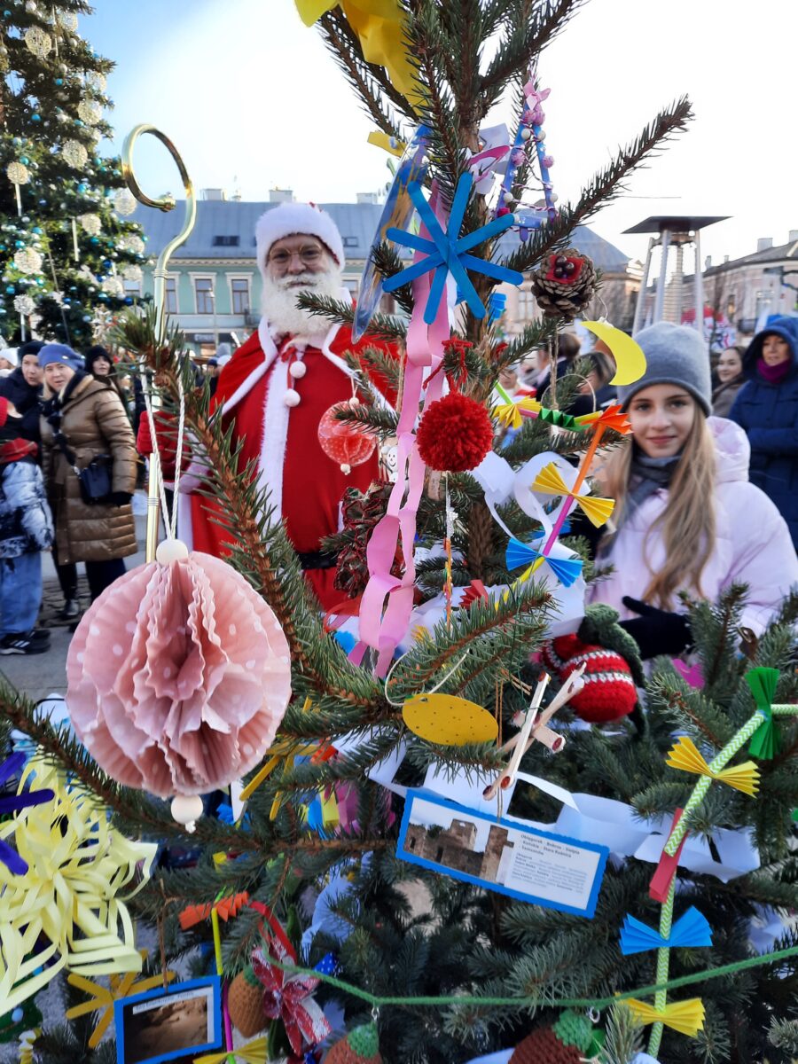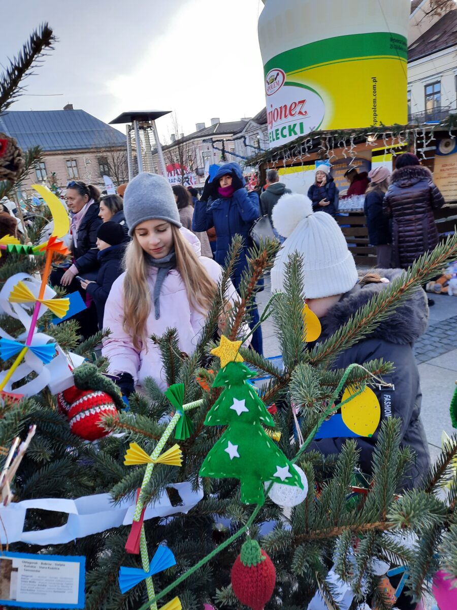 W dniu 13 grudnia w ramach Jarmarku Świętokrzyskiego na Rynku Kieleckim odbył się konkurs dla szkół na najładniej udekorowaną choinkę. Zadaniem uczestników, było ozdobienie choinek dekoracjami wykonanymi z naturalnych materiałów lub przy użyciu tradycyjnych form zdobniczych, nawiązujących do Świąt Bożego Narodzenia. Naszą szkołę reprezentowały trzy dziewczynki z klasy 4a. Ozdoby choinkowe wykonywaliśmy wykorzystując zasoby Szkolnego Laboratorium Przyszłości. W wyniku zmagań konkursowych otrzymaliśmy wyróżnienie.