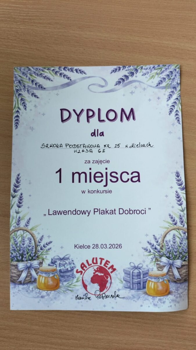 Z ogromną radością informujemy, że uczniowie klasy 6e zdobyli I miejsce w konkursie plastycznym „Lawendowy Plakat Dobroci”, organizowanym w ramach wydarzenia „Lawendowe Święto”. Konkurs miał na celu promowanie postaw dobroci, empatii i życzliwości oraz rozwijanie kreatywności i współpracy zespołowej.