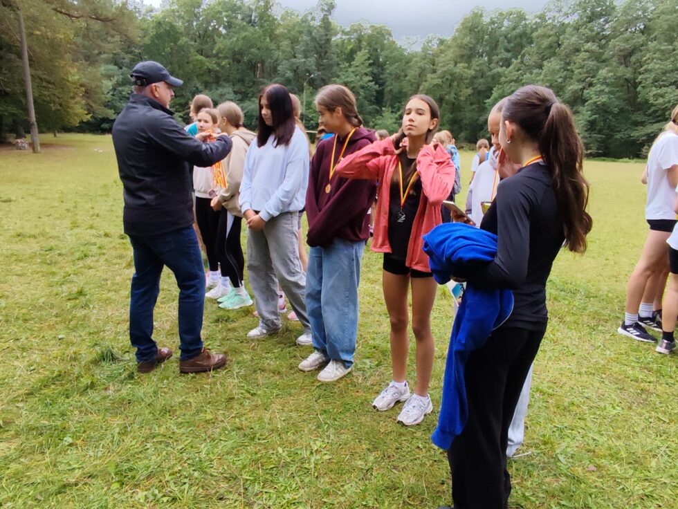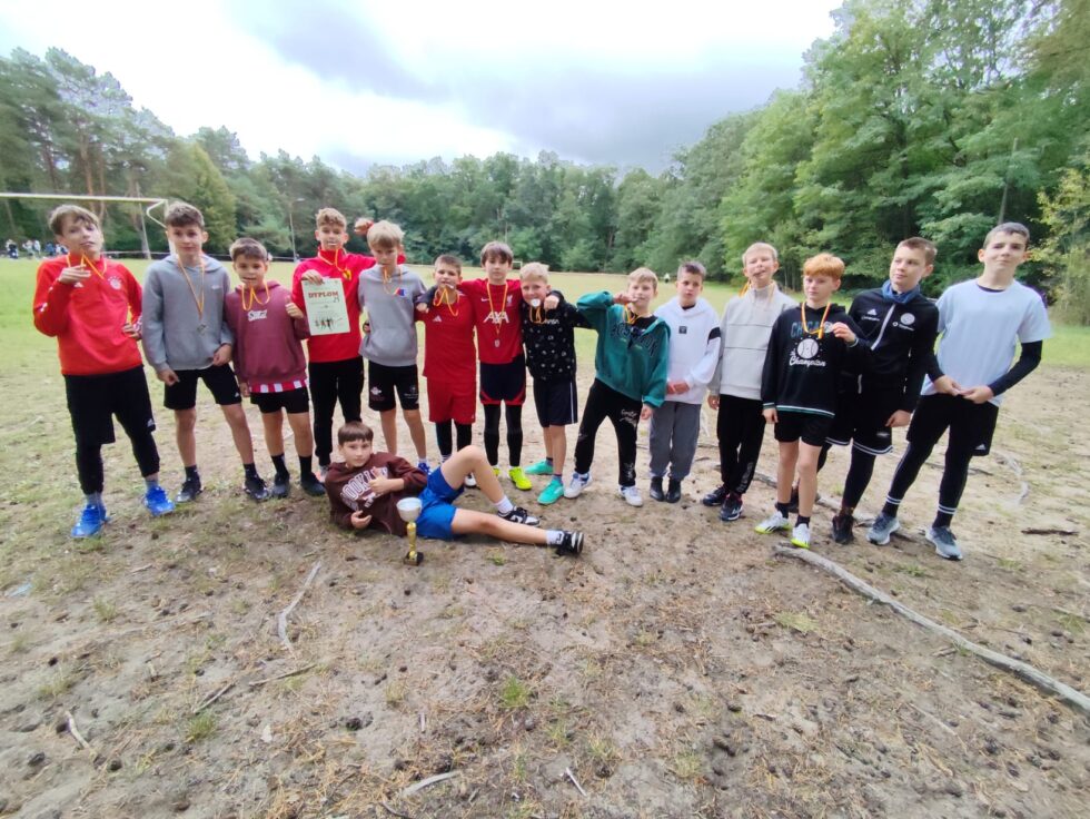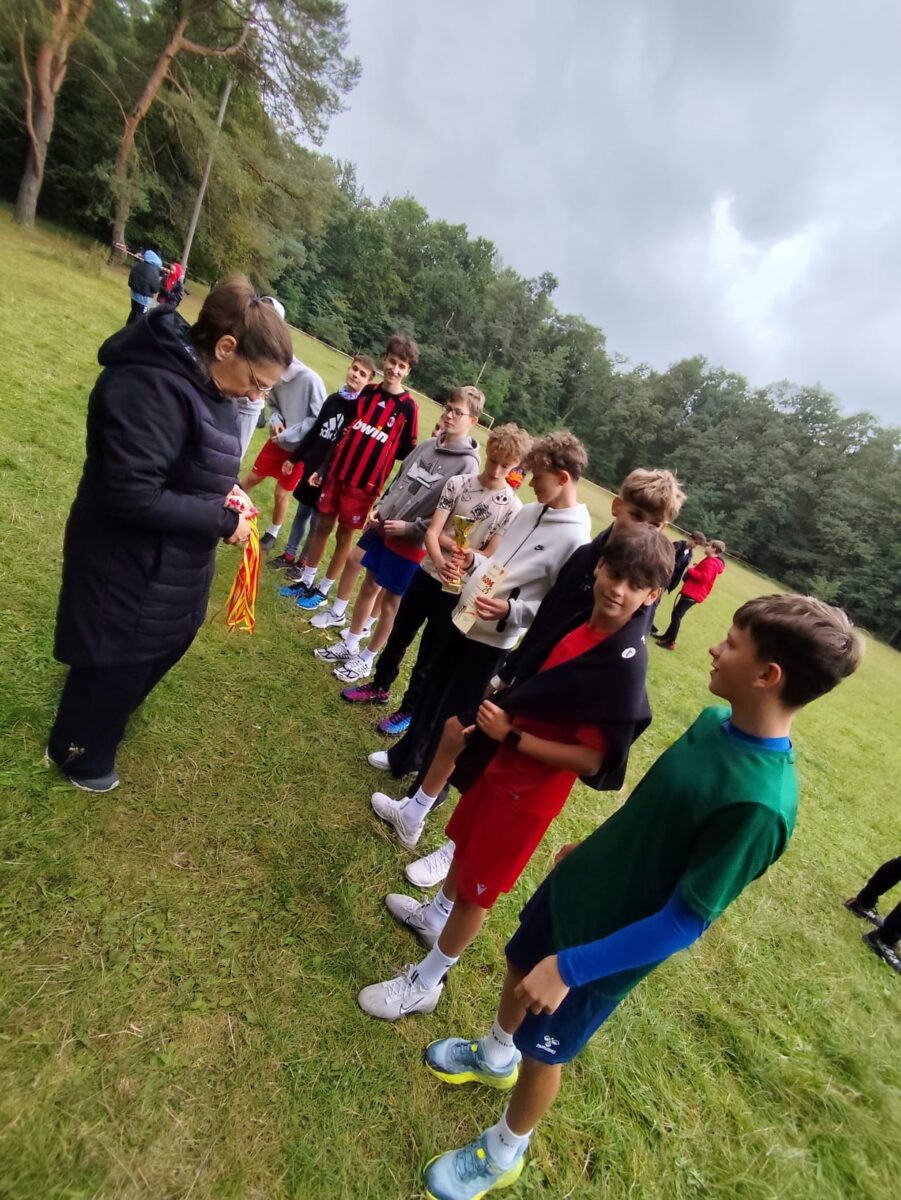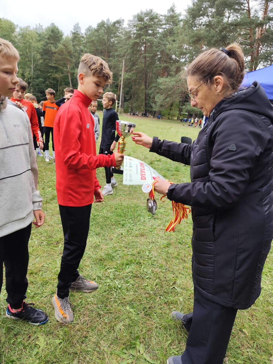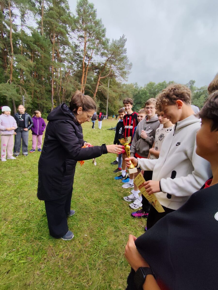 W dniach 6-7 października odbyły się Mistrzostwa Kielc Szkół Podstawowych w sztafetowych i indywidualnych biegach przełajowych. Uczniowie startowali w 3 kategoriach: klasy 4, 5-6 oraz 7-8. Jak co roku na starcie zjawiła się również mocna reprezentacja biegaczy naszej szkoły. Bardzo dobrze zaprezentowały się nasze sztafety: chłopcy najstarszych klas (J. Dudek, P. Mikina, A. Pietraszek, L. Gawlik, D. SIlivanov, N. Szuba, F. Wąchała, J. Szymoniak, T. Czapka, P. Ludwiński, B. Zamojski) okazali się bezkonkurencyjni i stanęli na najwyższym podium, zdobywając I miejsce i tytuł Mistrzów Kielc; ich młodsi koledzy z klas 4-6 (B. Gajos, M. Mazur, M. Nowakowski, M. Ludwinek, F. Pająk, J. Dąbrowski, A. Górecki, T. Mojecki, O. Pióro, M. Latała, W. Łuczyński, A. Kuchta, M. Trzęsień, D. Grudziński) również stanęli na podium „oczko” niżej, zdobywając srebrne medale. Drugiego dnia zawodów swoją siłę i wytrzymałość pokazały dziewczęta z klas 7-8 (I. Wijas, E. Gąsior, Z. Cygan, L. Goraj, L. Ścibór, L. Dzikowska, J. Wasik, N. Lewczuk, H. Rabiej, J. Książek, A. Grzegorczyk, H. Grzegorczyk), zajmując 2 miejsce i zdobywając tytuł wicemistrzyń Kielc. W indywidualnej rywalizacji Ignacy Bednarek z klasy czwartej uplasował się ostatecznie zaraz za odium, na IV miejscu. Wszystkim naszym reprezentantom serdecznie gratulujemy pierwszych sukcesów w zawodach lekkoatletycznym w nowym roku szkolnym!.