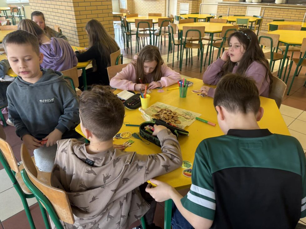 Dnia 13.04.2026r. o godzinie 10:05 w stołówce szkolnej odbyły się wyjątkowe warsztaty pt. „Pozytywne zamknięte w książce”. W wydarzeniu brały udział z klasy: 3a i 2c wraz z wychowawczyniami.