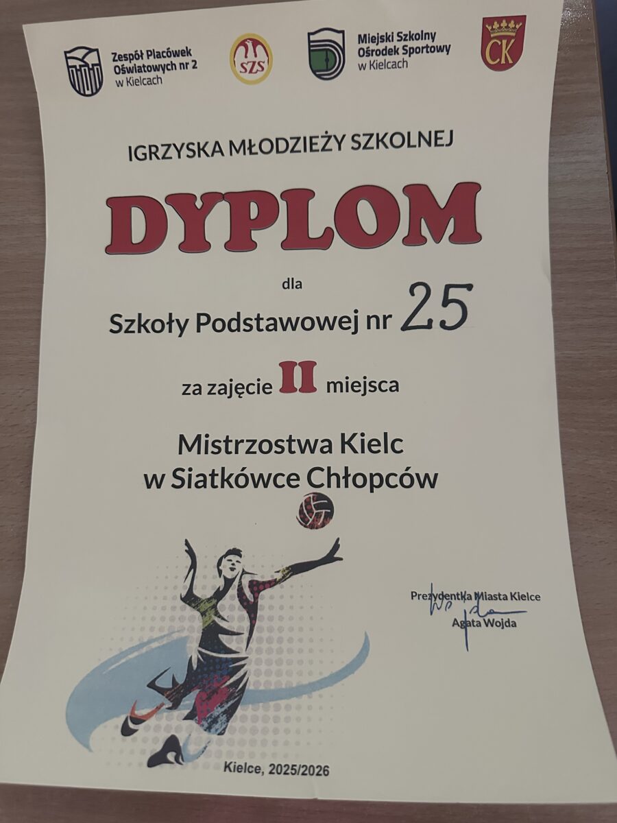 17 lutego w SP nr 1 w Kielcach, odbył się Turniej Finałowy Mistrzostw Kielc Szkół Podstawowych w siatkówce chłopców klas VIII. Nasza reprezentacja (I. Prus, D. Silivanov, M. Chłopek, T. Czapka, P. Ludwinek, J Dudek, P. Mikina, J. Szymoniak) pod wodzą nauczyciela p. T. Michalskiego zajęła II miejsce i zdobyła tytuł wicemistrzów Kielc! Gratulujemy niewątpliwych sukcesów na siatkarskiej arenie Kielc!
