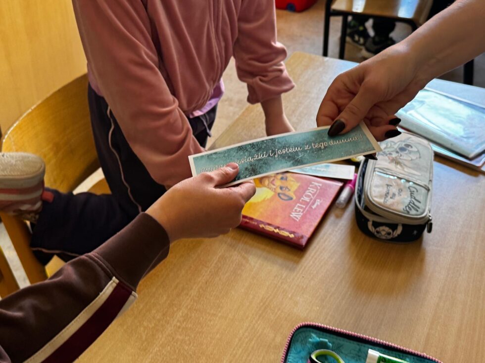 Aby ten dzień na dłużej zapadł w pamięć, każdy uczestnik otrzymał pamiątkową zakładkę oraz okolicznościowe naklejki. Te drobne upominki mają za zadanie towarzyszyć uczniom w ich codziennych przygodach z literaturą, przypominając, że książka jest niezastąpionym źródłem wiedzy i inspiracji.