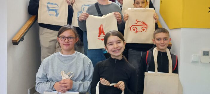 20 lutego 2026r. klasa 5a byłą w Instytucie Dizajnu w Kielcach na niezwykłych warsztatach „Design wokół nas”. W ich trakcie każdy mógł wykazać się kreatywnością i ozdobić torbę, którą mógł zabrać do domu. Był to świetny czas klasowej integracji i rozwijania zdolności manualnych.